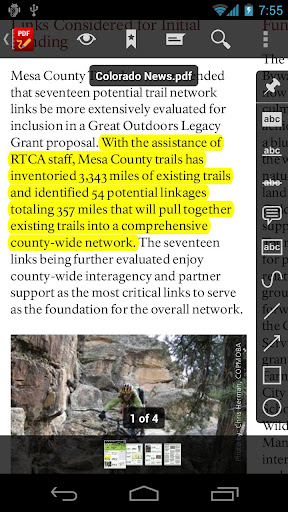 * Read documents easily with reflowed text, text-to-speech, color themes and brightness settings