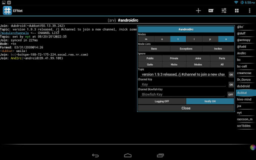 Android IRC is the Premier Android Internet Relay Chat Client.